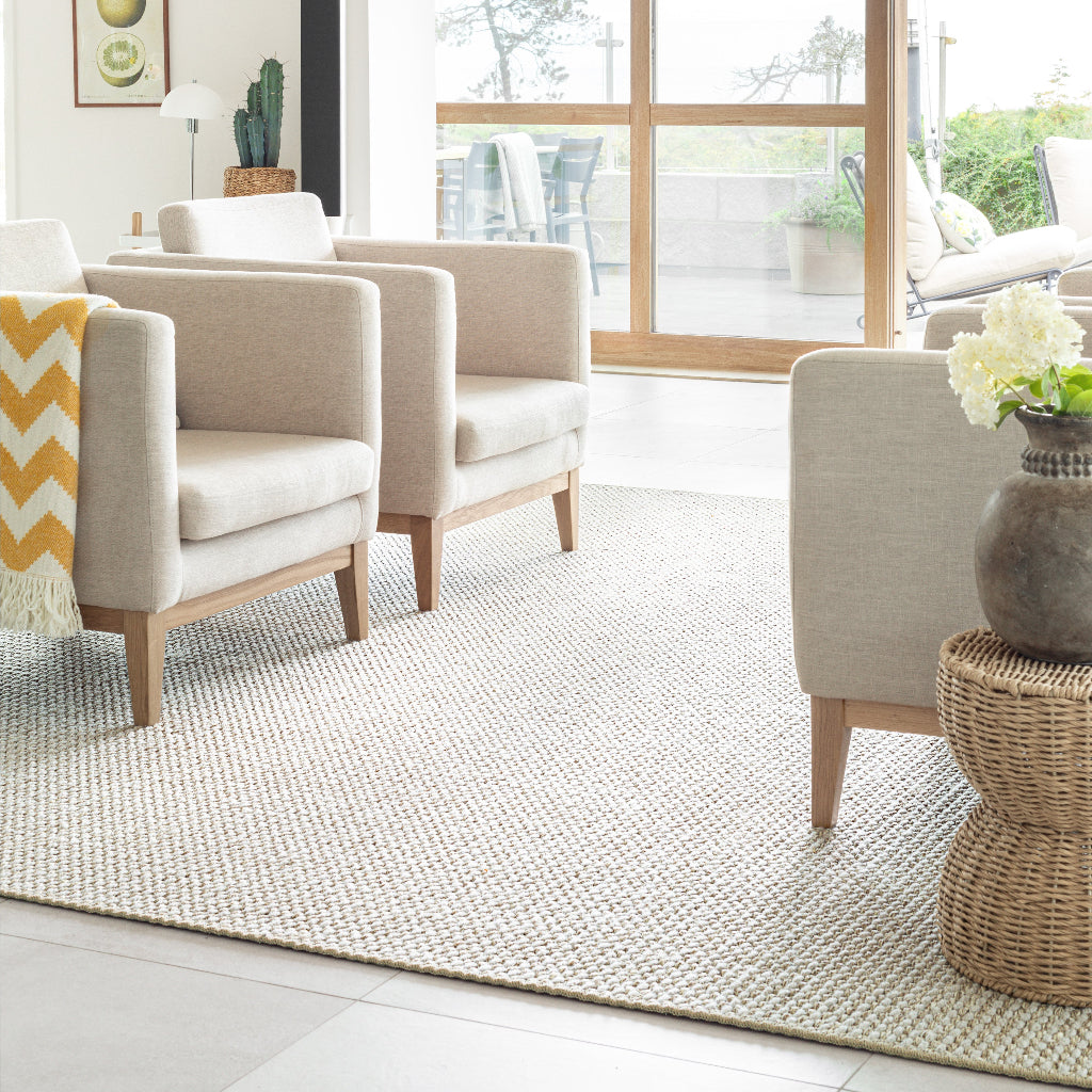 Nordic Weave er et vevd teppe med et klassisk og robust uttrykk, laget av en blanding av 60 % sisal og 40 % ull. Den grove veven gir en naturlig følelse og et elegant utseende med personlighet. Nordic Weave passer like bra som måltilpasset teppe under en spisegruppe eller en sofa.