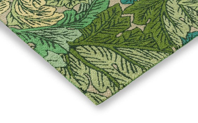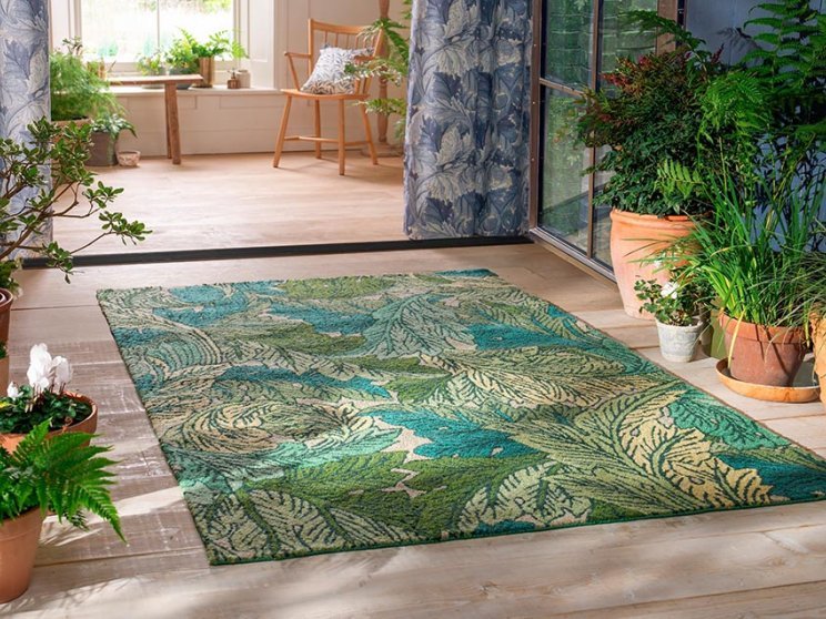 William Morris & Co Acanthus Nettle sky blue 427307 er et teppe utviklet for fleksibel bruk både innendørs og utendørs. Teppet er godt egnet for terrasser, balkonger og uterom, samtidig som det fungerer like godt i innendørs oppholdsrom.