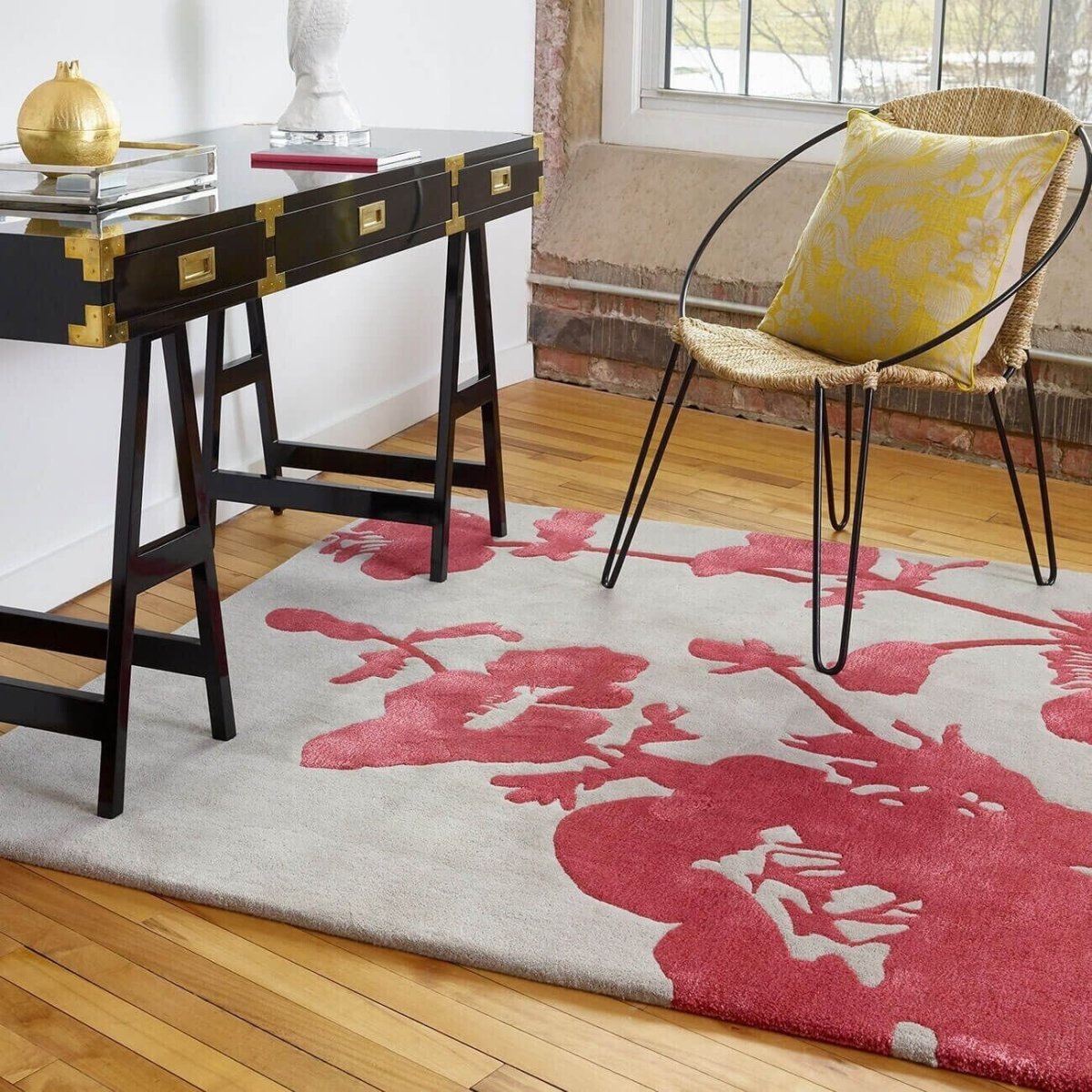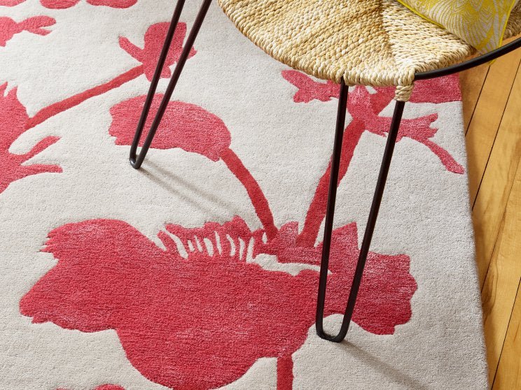 Florence Broadhurst teppe, Floral 300 Poppy 39600 er et håndtuftet teppe utviklet for bruk i hjemmemiljøer der både funksjon og visuelt uttrykk er viktig. Teppet har et markant og dekorativt uttrykk som passer godt inn i rom med gjennomtenkt innredning.