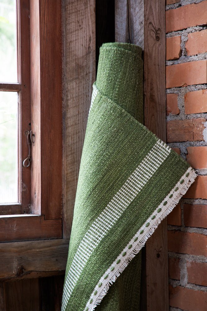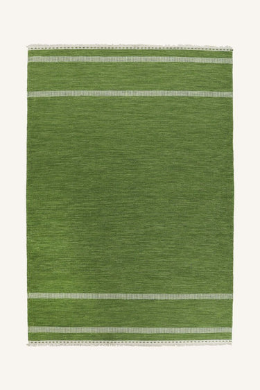 Grinda Grønn leveres som avpasset teppe i faste størrelser og er godt egnet for møblerte soner som sofagrupper eller sitteområder. Den grønne fargetonen gir rommet et naturlig og balansert uttrykk som harmonerer godt med både treverk og andre naturmaterialer.