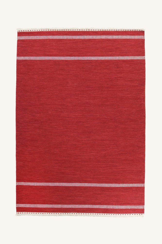 Grinda rød leveres som avpasset teppe i faste størrelser og er godt egnet for møblerte soner som sofagrupper eller sitteområder. Fargetonen gir rommet et naturlig og balansert uttrykk som harmonerer godt med både treverk og andre naturmaterialer.