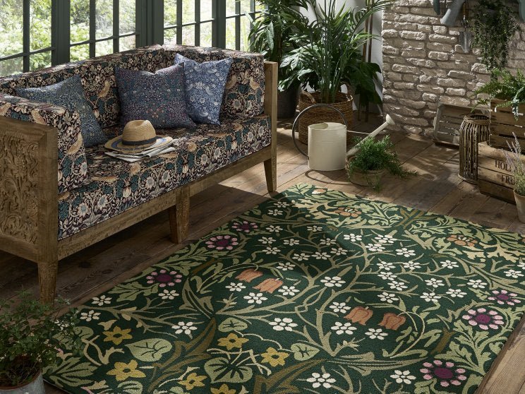 William Morris & Co Blackthorn Tump 428507 er et teppe utviklet for fleksibel bruk både innendørs og utendørs. Teppet er godt egnet for terrasser, balkonger og uterom, samtidig som det fungerer like godt i innendørs oppholdsrom.