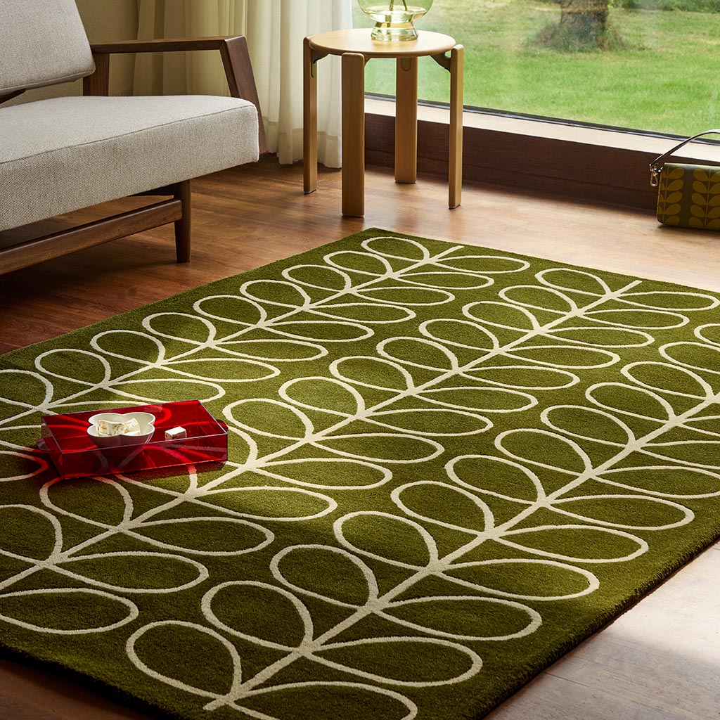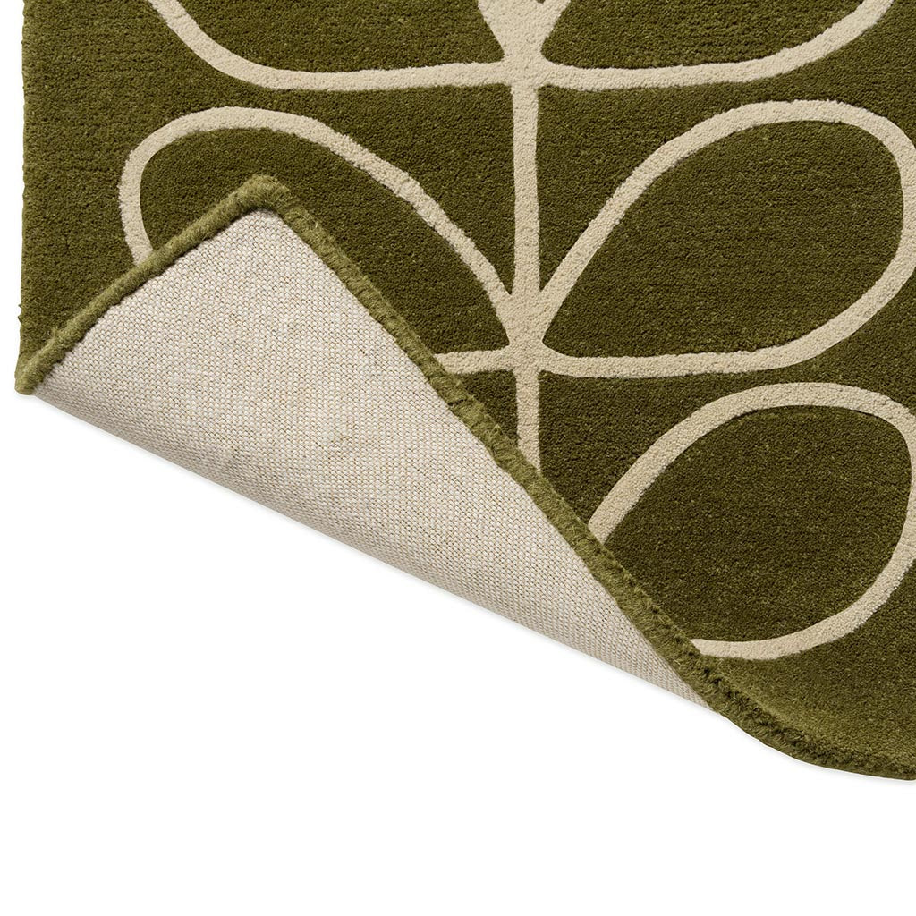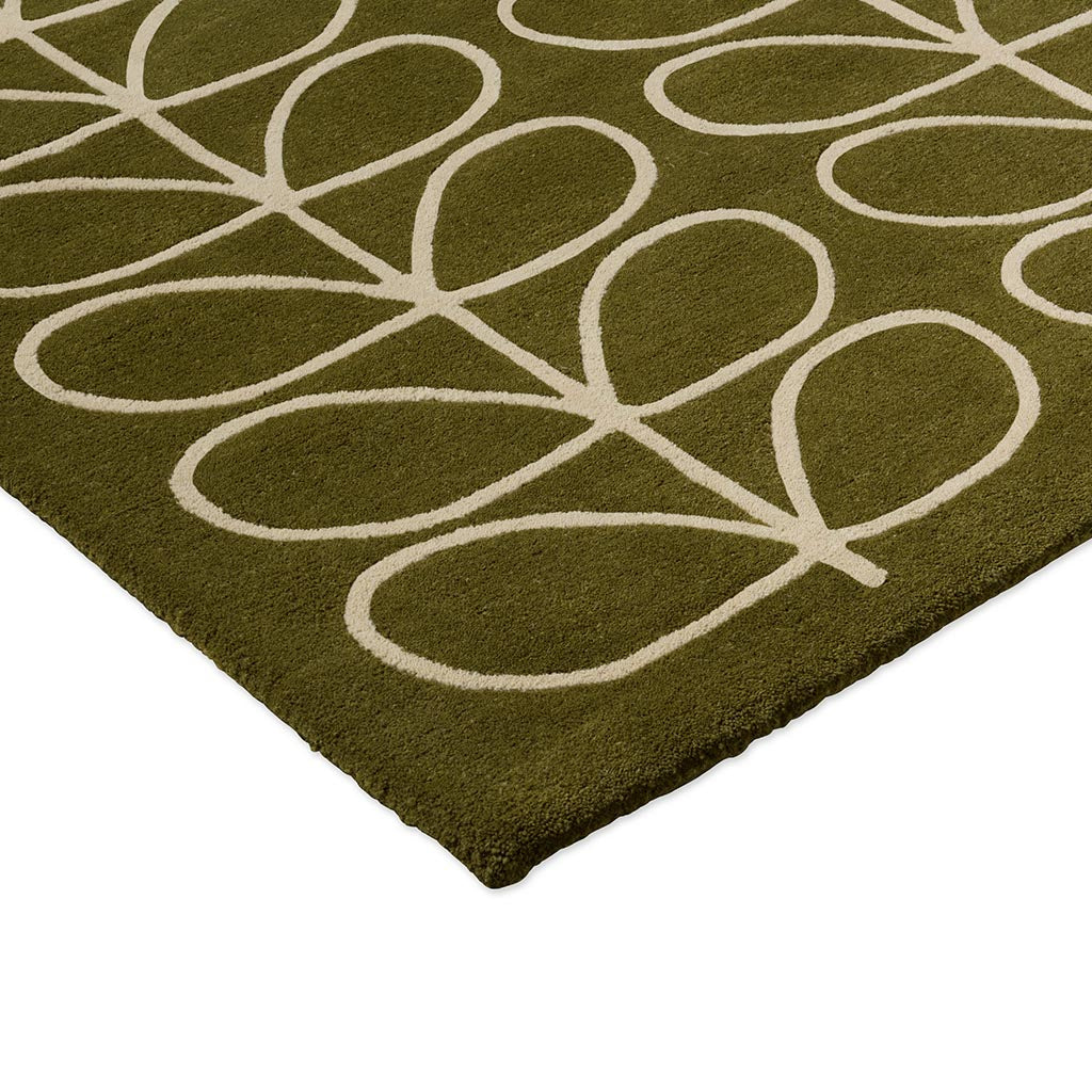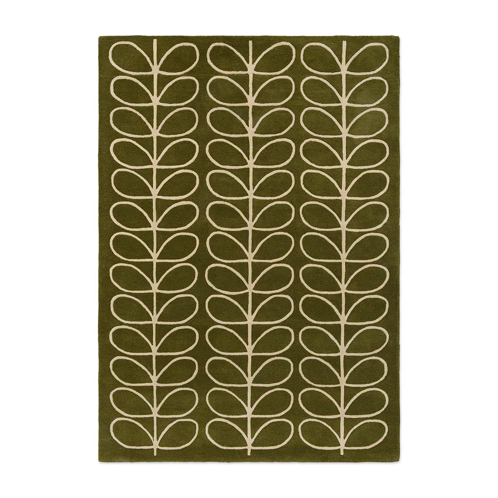Orla Kiely Linear Stem Olive er et håndtuftet teppe med det karakteristiske Linear Stem-mønsteret, der stiliserte blader danner et stramt og grafisk uttrykk. Fargetonen i Olive gir et rolig og naturlig preg som fungerer godt i både moderne og mer klassiske interiører.