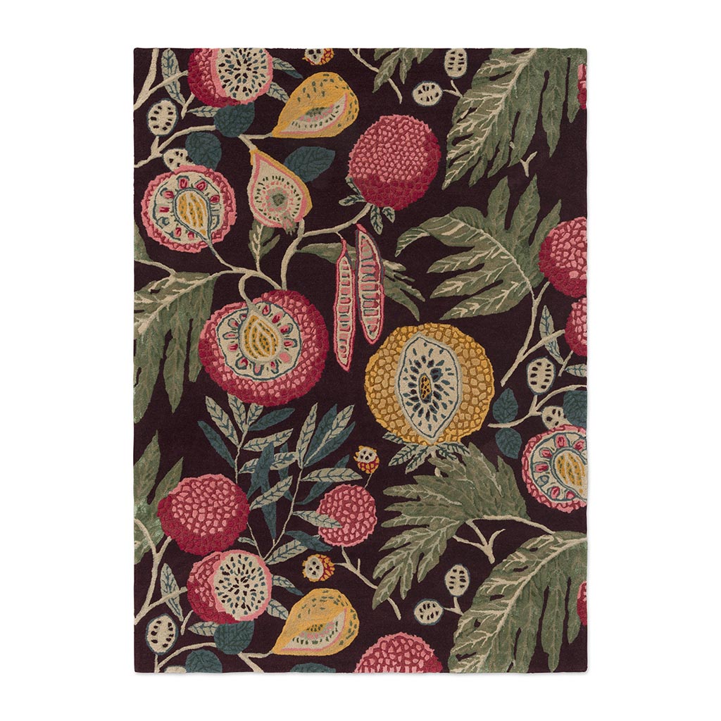 Sanderson Jackfruit Cherry Albaster er et dekorativt designteppe med et rikt botanisk uttrykk, inspirert av klassisk britisk tekstiltradisjon. Mønsteret består av stiliserte frukt- og planteformer, gjengitt i en harmonisk fargepalett med varme røde toner balansert mot lyse, rolige nyanser.