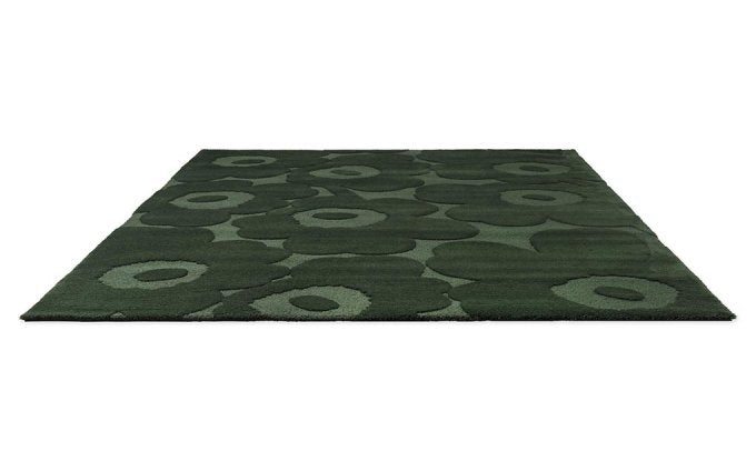 Marimekko Unikko Dark Green er et håndtuftet ullteppe utviklet for bruk i hjemmemiljøer der funksjon og materialkvalitet er viktig. Teppet har et rolig og balansert uttrykk som passer godt inn i rom med gjennomtenkt og tidløs innredning.